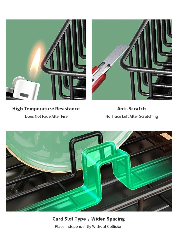 Het rek biedt ruimte voor borden, kommen, glazen en bestek. De stevige structuur zorgt dat alles veilig blijft staan, terwijl het compacte formaat past op elk aanrecht – van kleine appartementen tot ruime gezinskeukens.